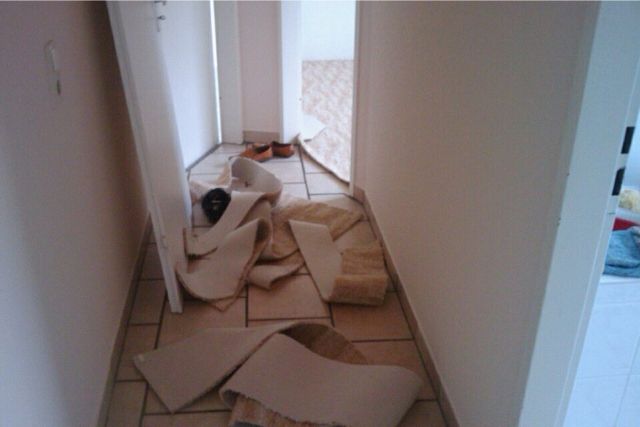 Es ist alles fertig gestrichen und im mega großen Arbeitszimmer haben sie schon den Teppich verlegt. Sieht wirklich total schön aus.