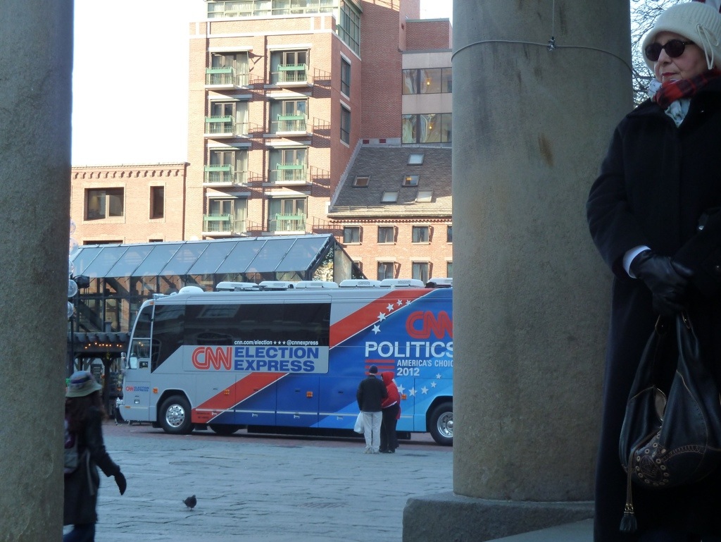 Heute in der Stadt standen Fernseh Übertragungswaagen und es wurden große Leinwände aufgebaut für die Wahlparties.