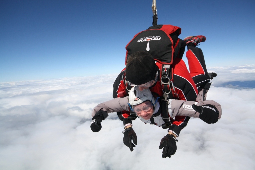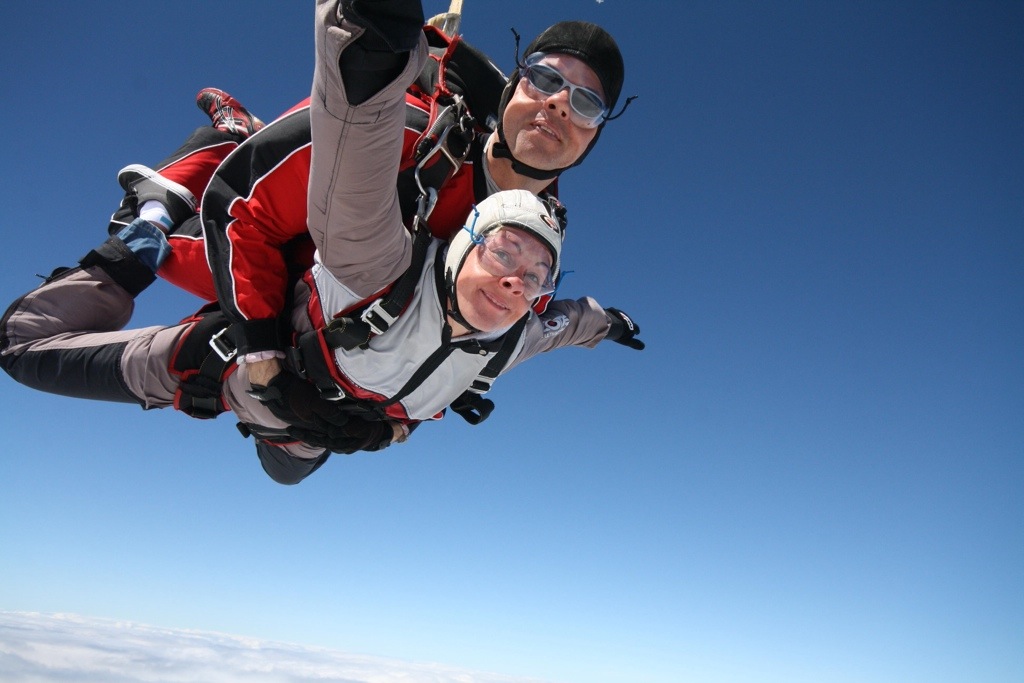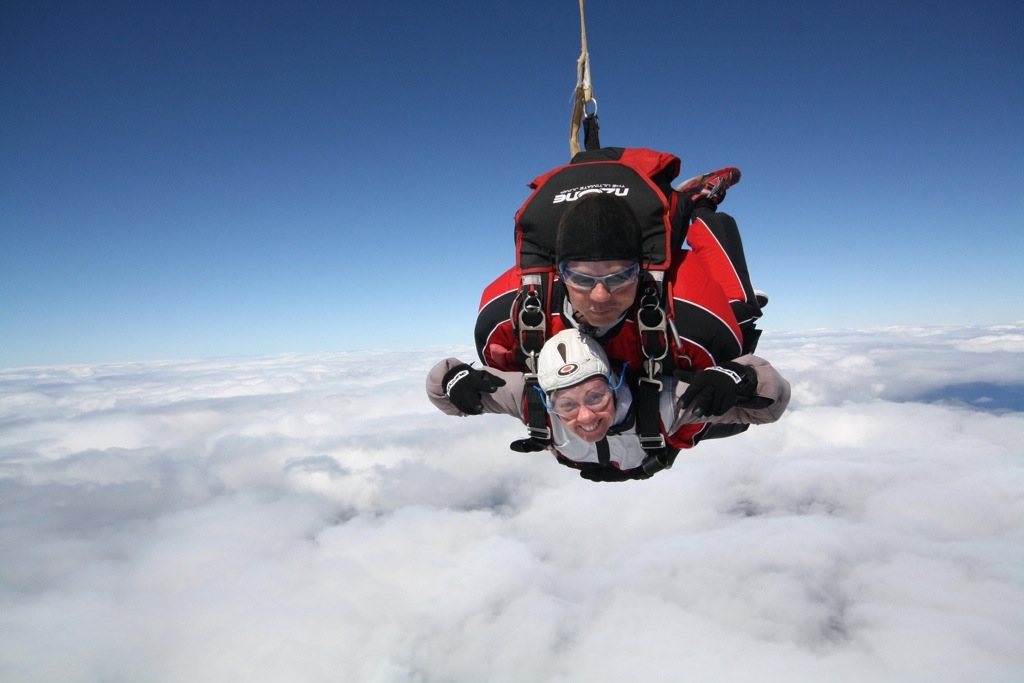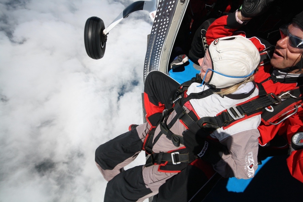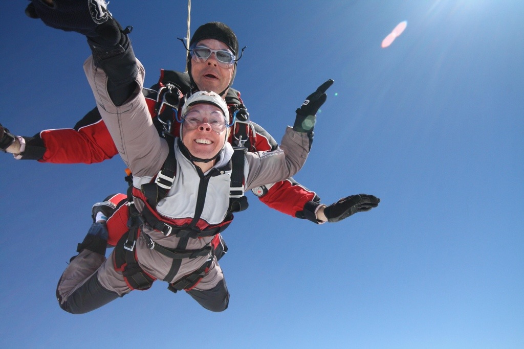 Diese eine Minute freier Fall kommt einem vor wie ein paar Sekunden, bevor sich der Schirm öffnet und man auf die Erde im sanften Flug hinab gleitet.
