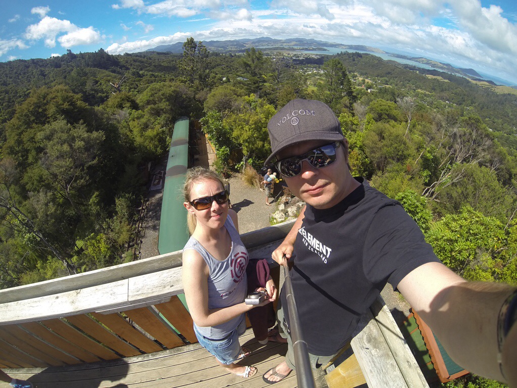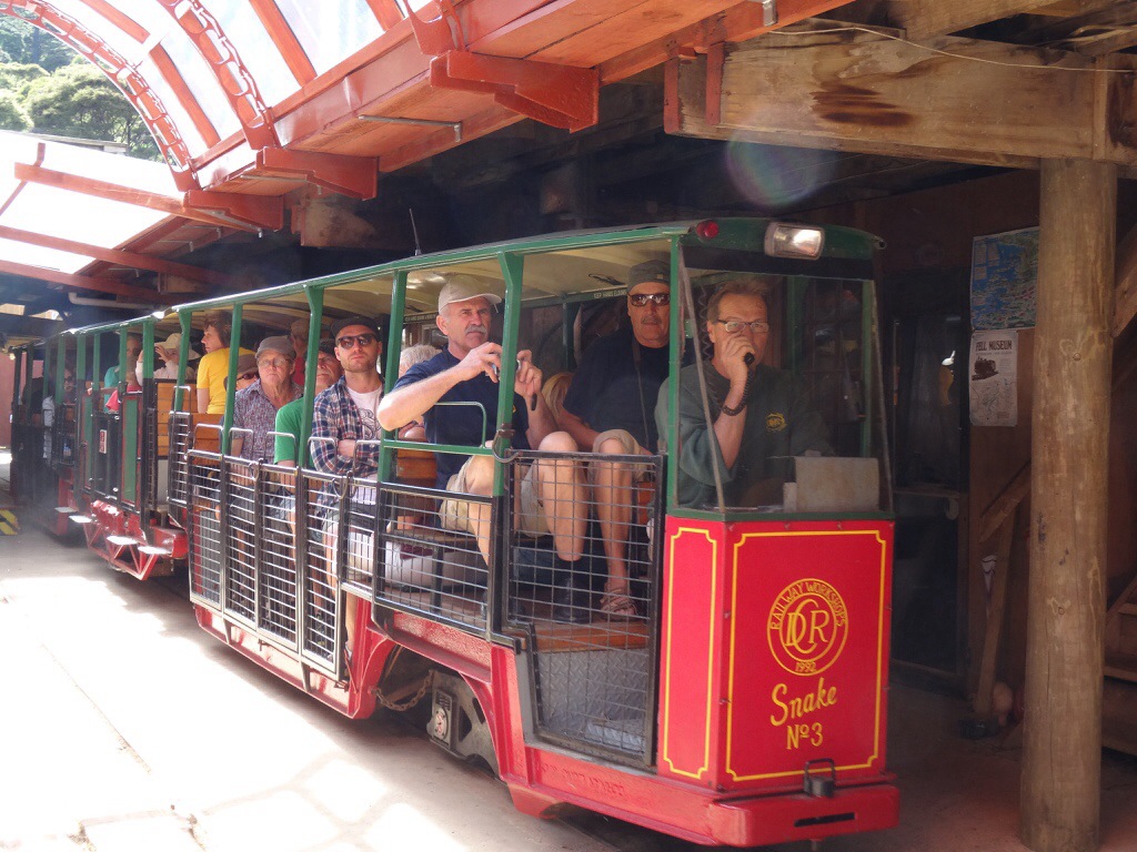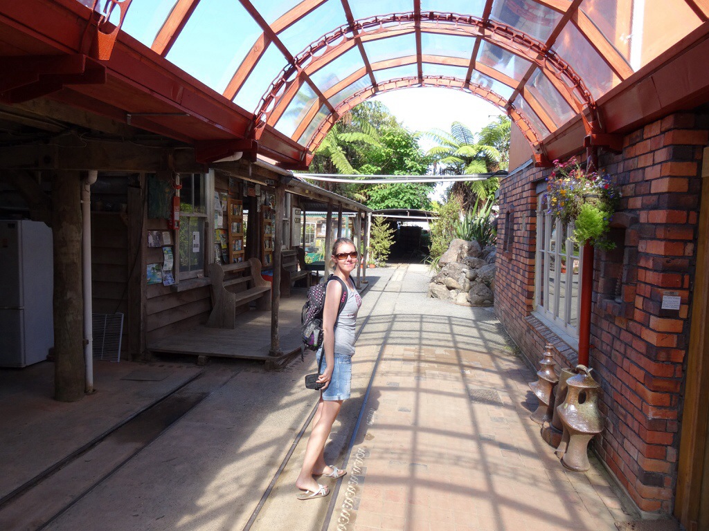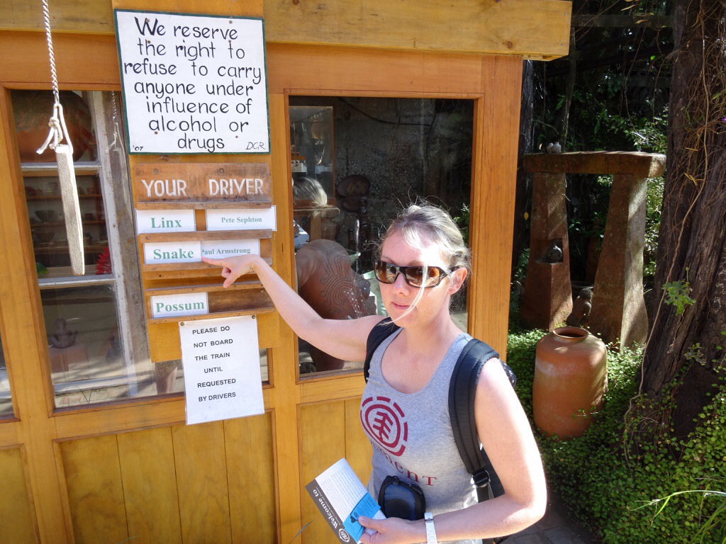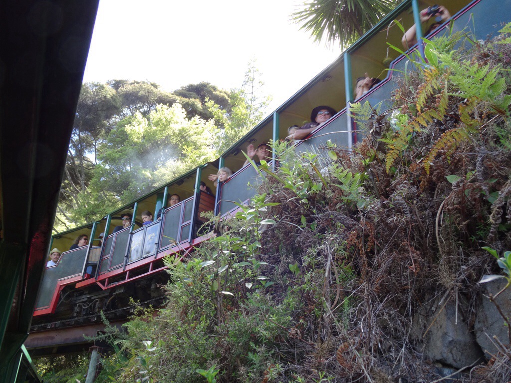 Dabei haben wir aber noch einen Zwischenstopp eingelegt um in Coromandel Town mit dem Driving Creek Railway zu fahren, eine Schmalspurbahn. Sie entstand Mitte der 1970er Jahre, um Rohstoffe für eine Töpferei aus den Bergen zu holen. Schon lange transportiert die Bahn jedoch mehr Ausflügler als Fracht. Die Strecke windet sich mehr als 3 km in die Berge mit unzähligen Kurven, ein paar „hautengen“ Tunnelröhren, einer Spirale, einem doppelstöckig zu befahrenen Abschnitt, sowie mehreren Spitzkehren.