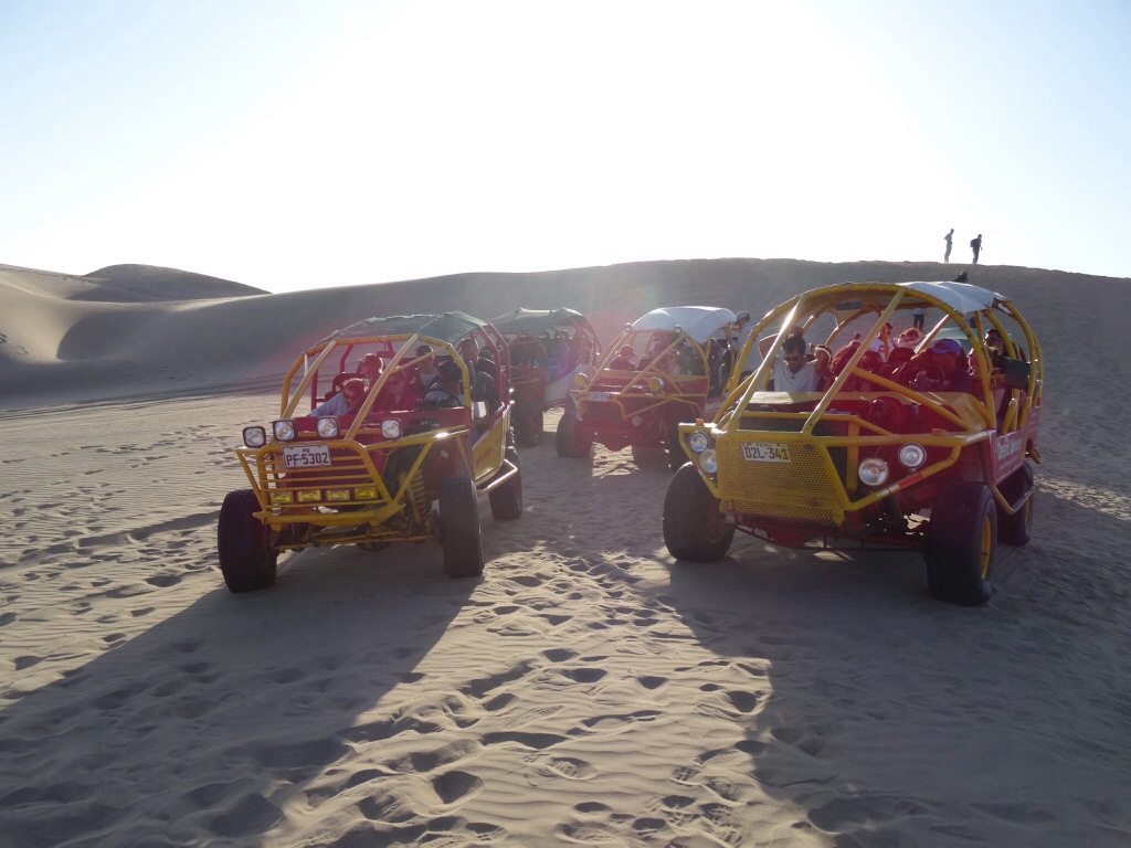 Querfeldein ein gehts es im rasanten Tempo durch die Wüste Perus, mit Stops zum boarden. Leider können wir es nicht so machen wie beim Snowboarden, wir müssen auf dem Bauch die Düne runter rutschen, da die Bretter recht dick sind, und nicht so dünn wie normale Snowboards, was aber auch sehr viel Spaß macht.