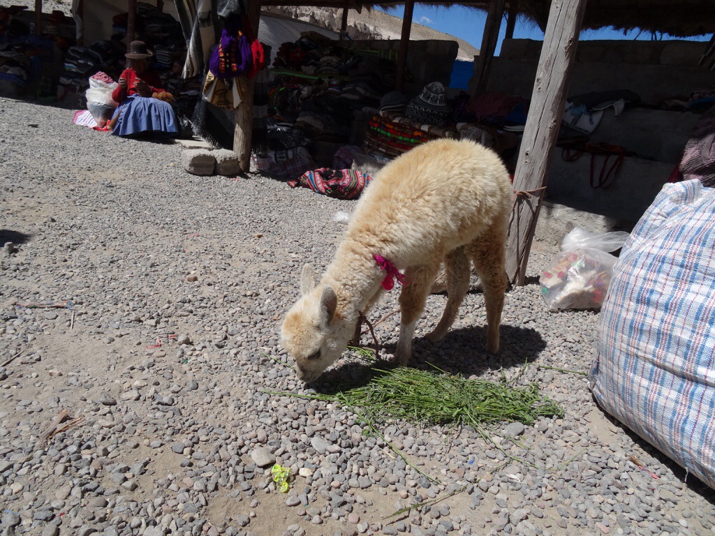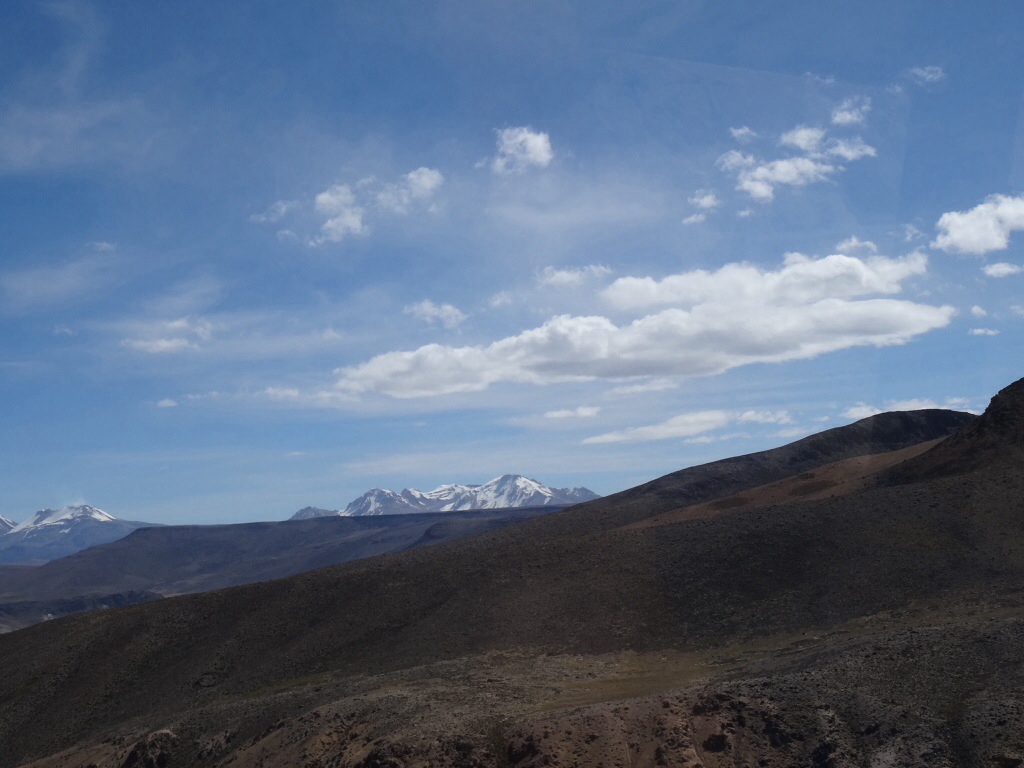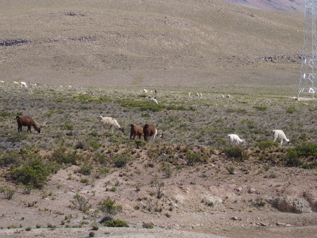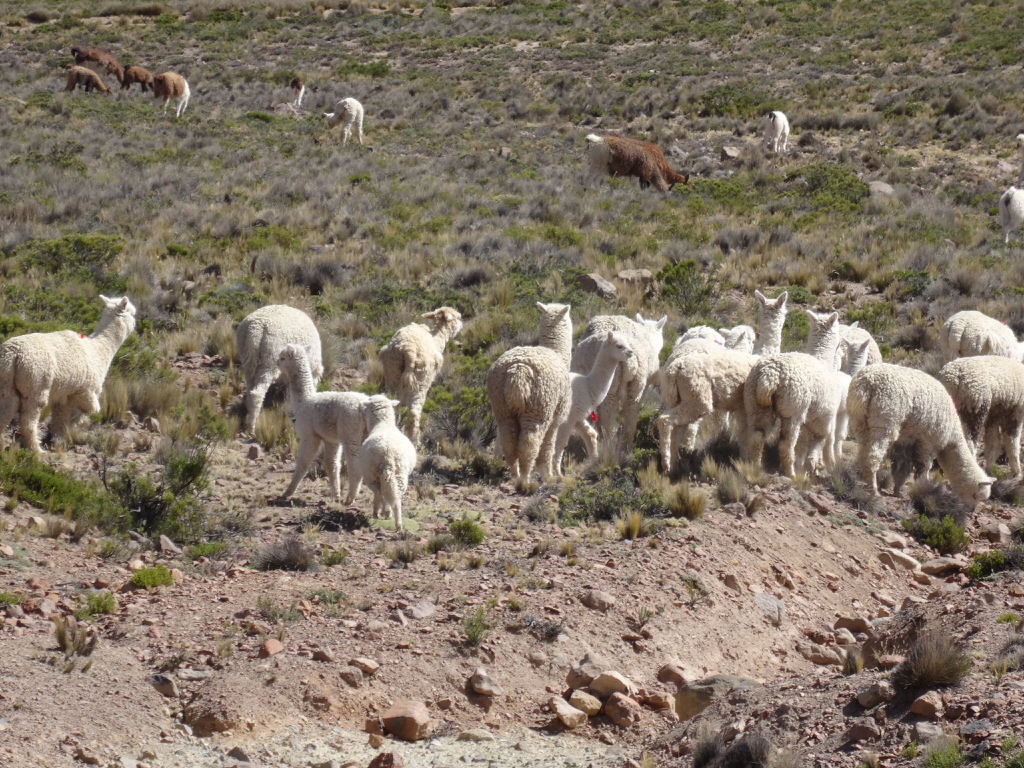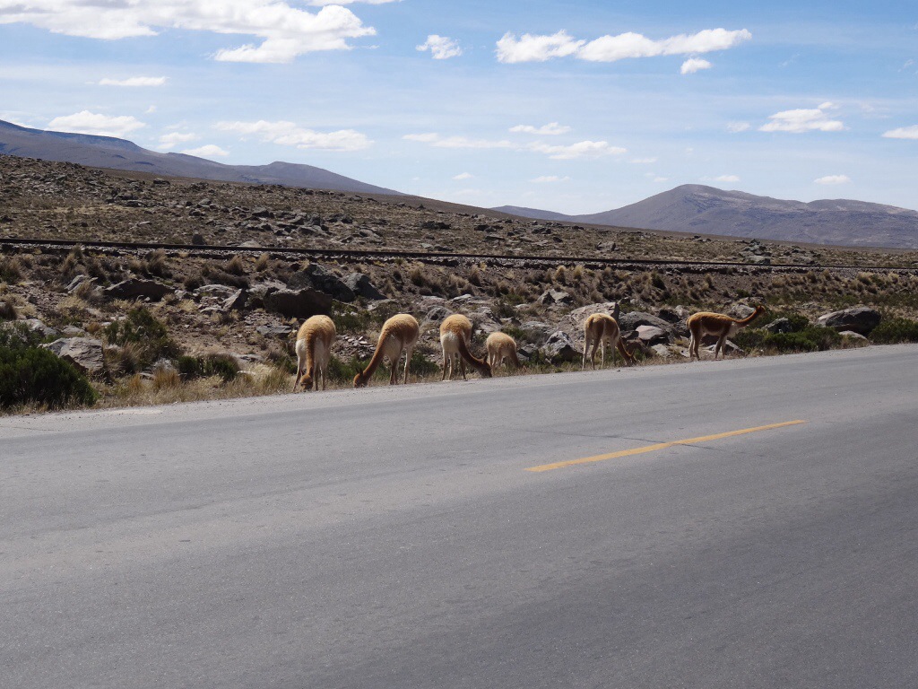 Wir kommen vorbei an Lamas, Alpacas und Vicunas, die uns als Fotomodelle dienen. Dann wird es ernst, aus Asphalt wird bald Piste, und auf dem Patapampa- Pass erreichen wir 4870 m über dem Meeresspiegel.
