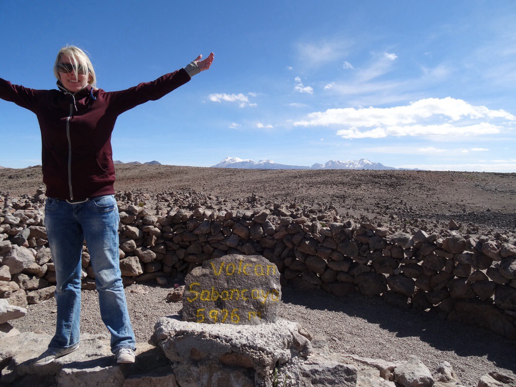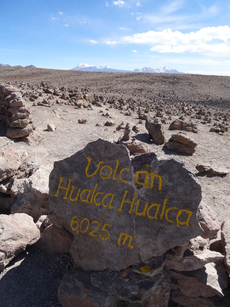 Auf knapp 5000 m Höhe fällt einem jeder Gang so schwer, als wäre man auf dem Mond, trotzdem machen wir noch schnell ein Foto, bevor es wieder nach unten geht und wir endlich in Yanque ankommen, was nur noch auf 3420 m liegt.