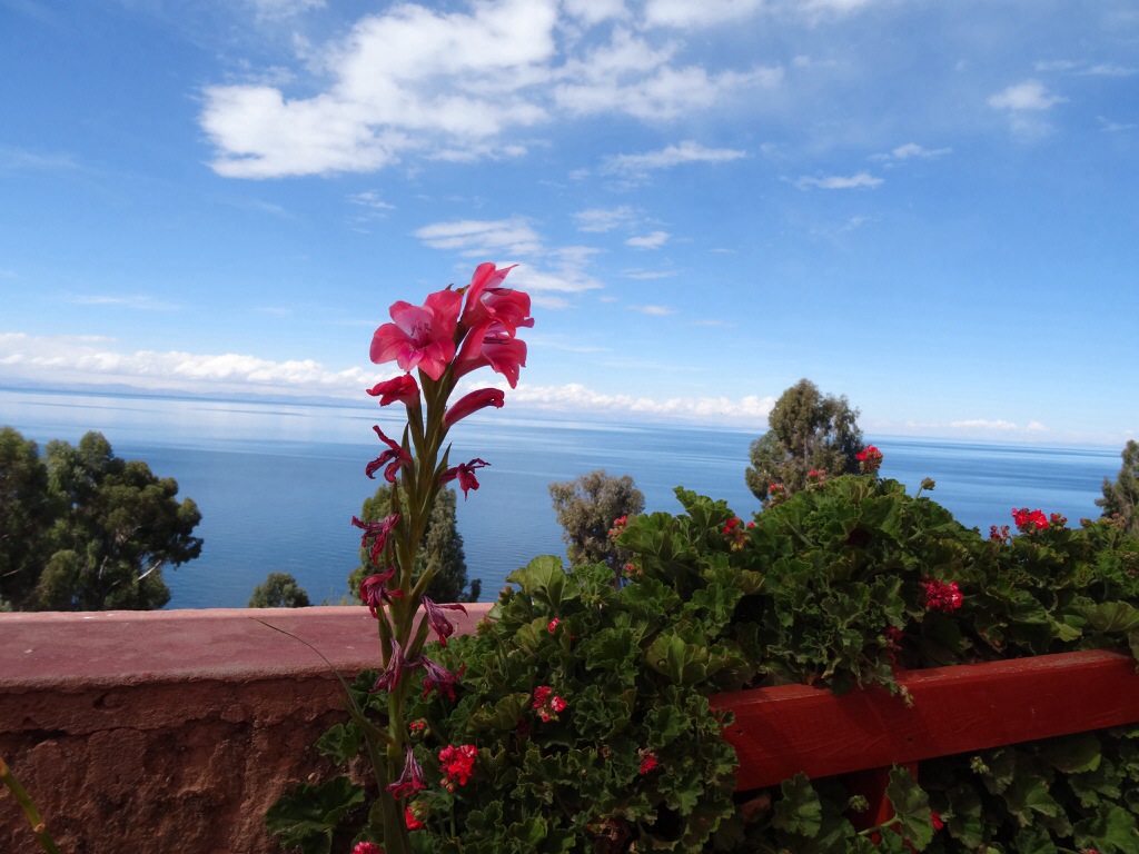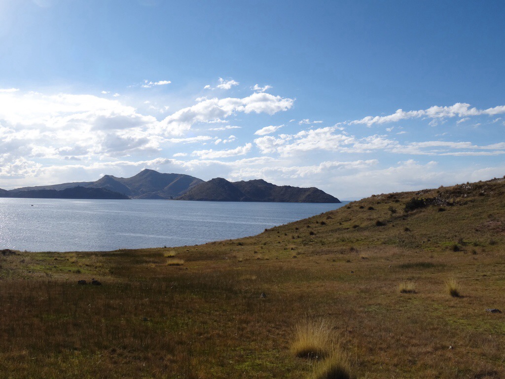Hier auf der Insel machen wir eine 1-stündige Wanderung. Die Aussicht ist fantastisch, die Sonne scheint, es ist warm und man kann nicht glauben, dass man auf einer Insel auf dem Titicacasee wandert auf knapp 4000 Metern Höhe. Wir schnaufen, wenn der Weg steil ansteigt, aber meistens kann man geradeaus laufen.