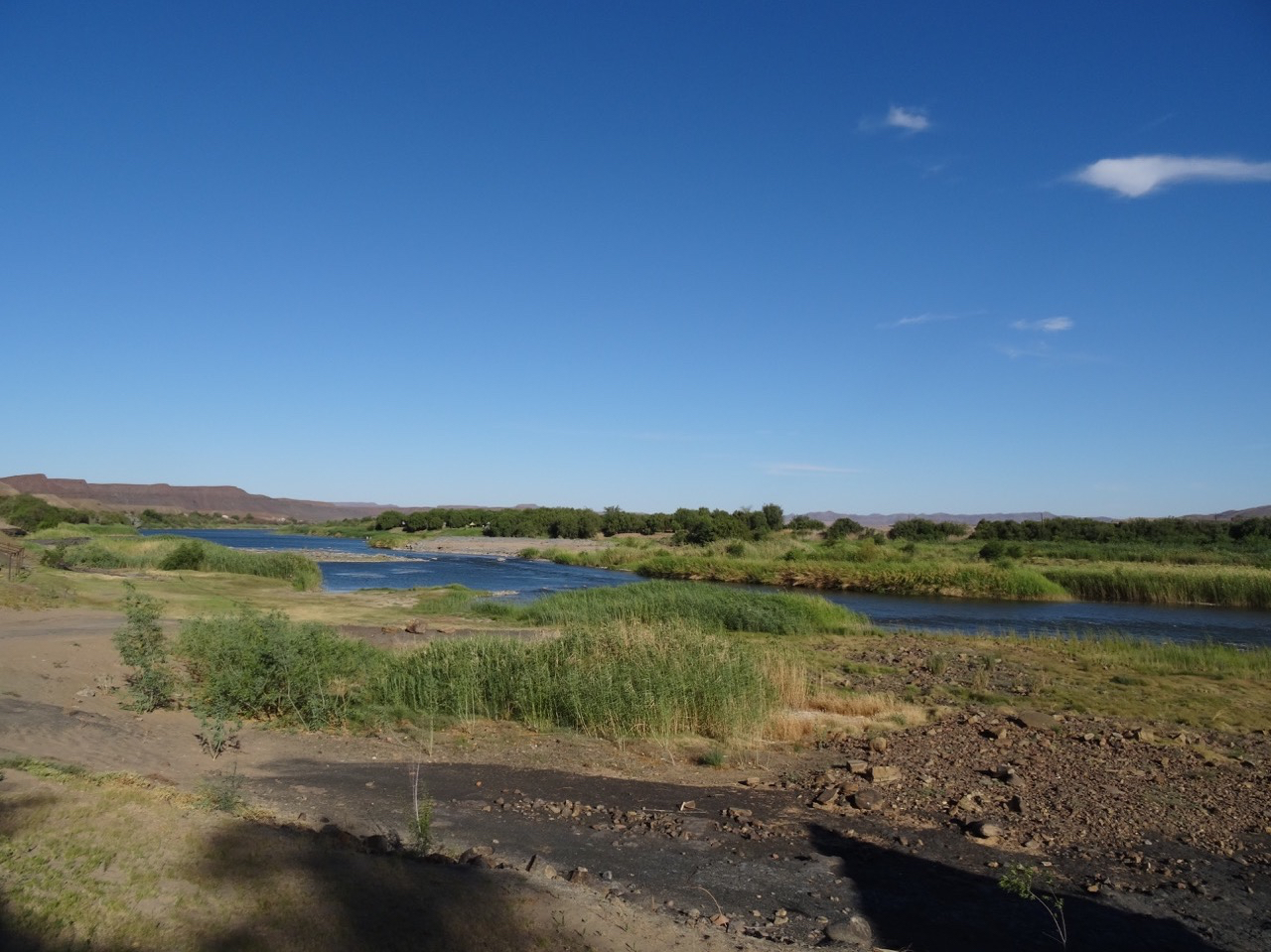 Zu gar nicht mal so früher Stunde geht die Fahrt heute weiter zu unserem Camp am Ufer des Orange Rivers, der natürlichen Grenze zwischen Südafrika und Namibia.