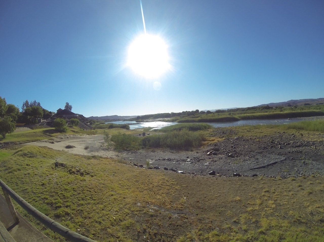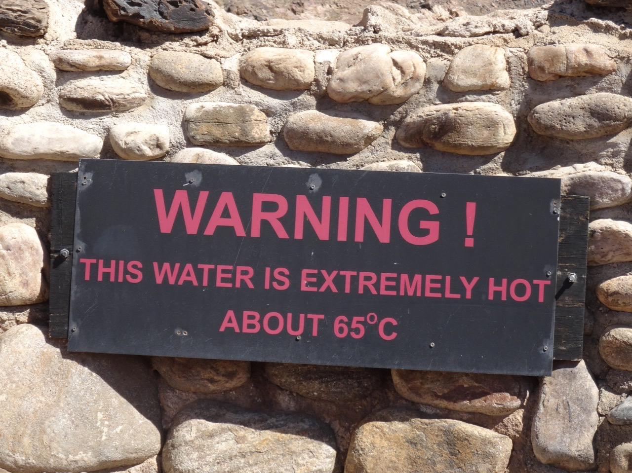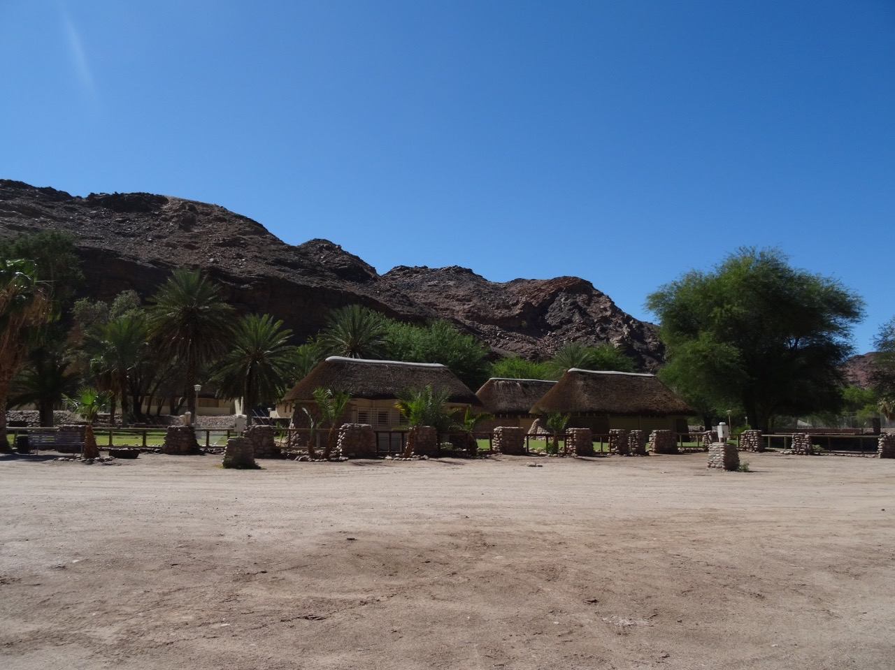 Wir halten in Ai-Ais, das bekannt für seine heiβen Quellen ist und nehmen ein Bad. Das Thermalwasser, reich an Schwefel und Fluoriden, erreicht eine Temperatur von bis zu 60°C. In der Sprache der Nama bedeutet „Ai-Ais“ „brennendes Wasser“.