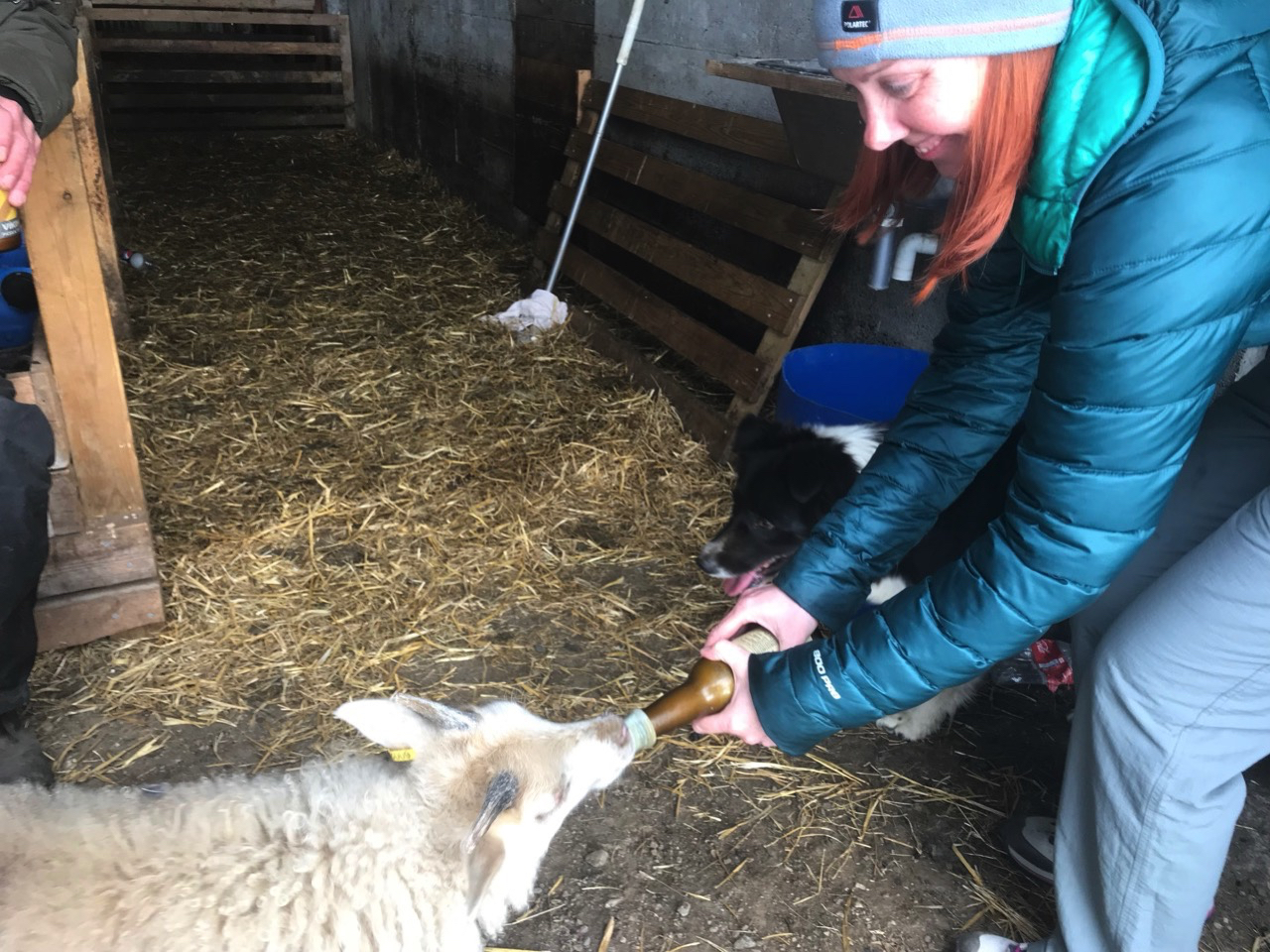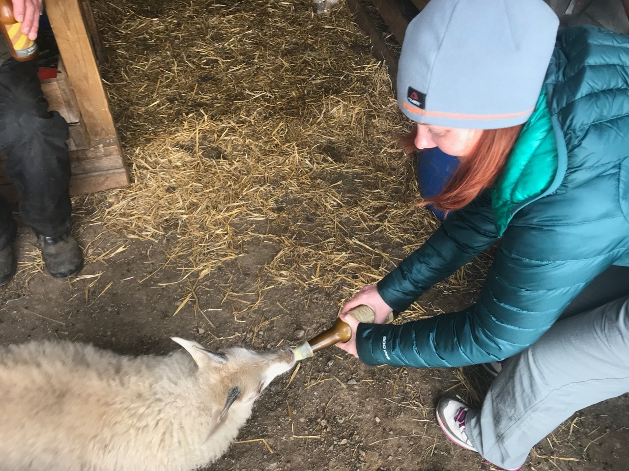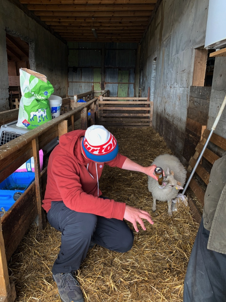 Und tatsächlich, ich habe Glück. Stefan, der Hofbesitzer, lässt uns die Lämmer füttern, die leider ihre Mutter verloren haben.