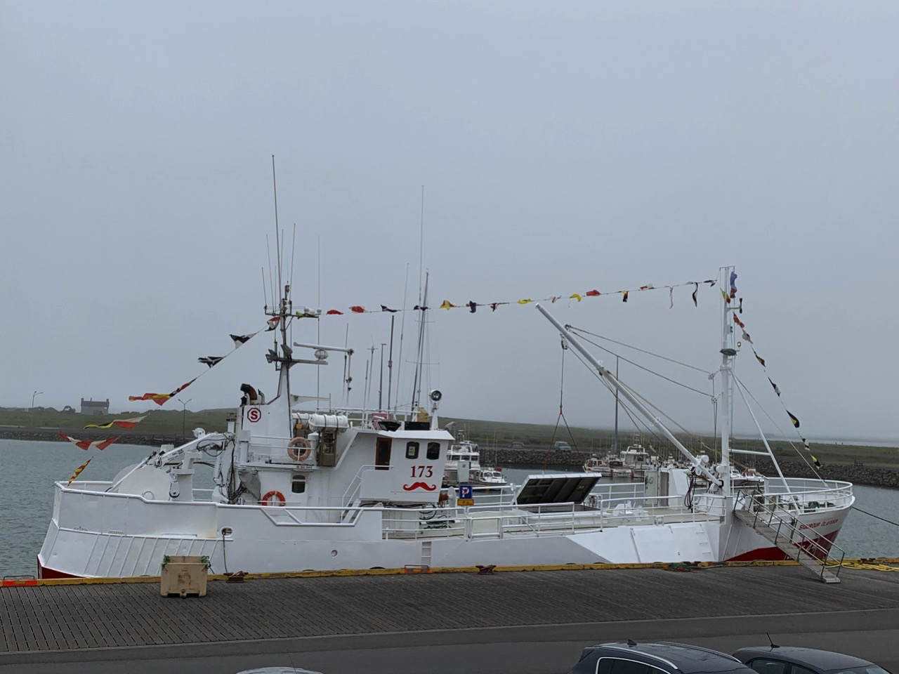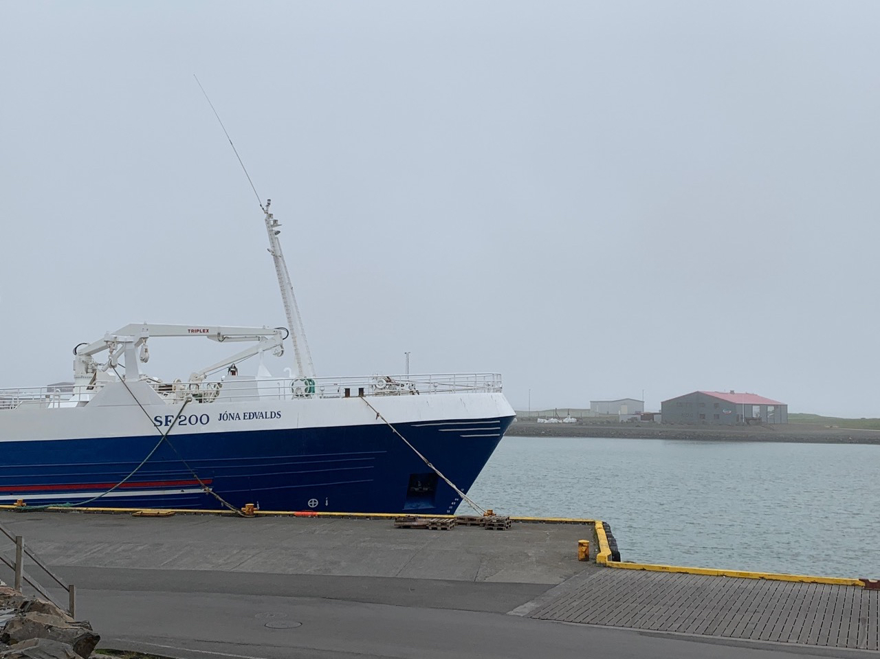 In Höfn angekommen, besuchen wir erst mal den örtlichen Supermarkt, der letzte Ort hatte keinen, und schauen uns ein wenig um. Das Wetter ist heute morgen nicht so gut, der Nebel versperrt einem die Sicht auf das, was man sehen könnte. Und wirklich warm ist es auch nicht mehr.