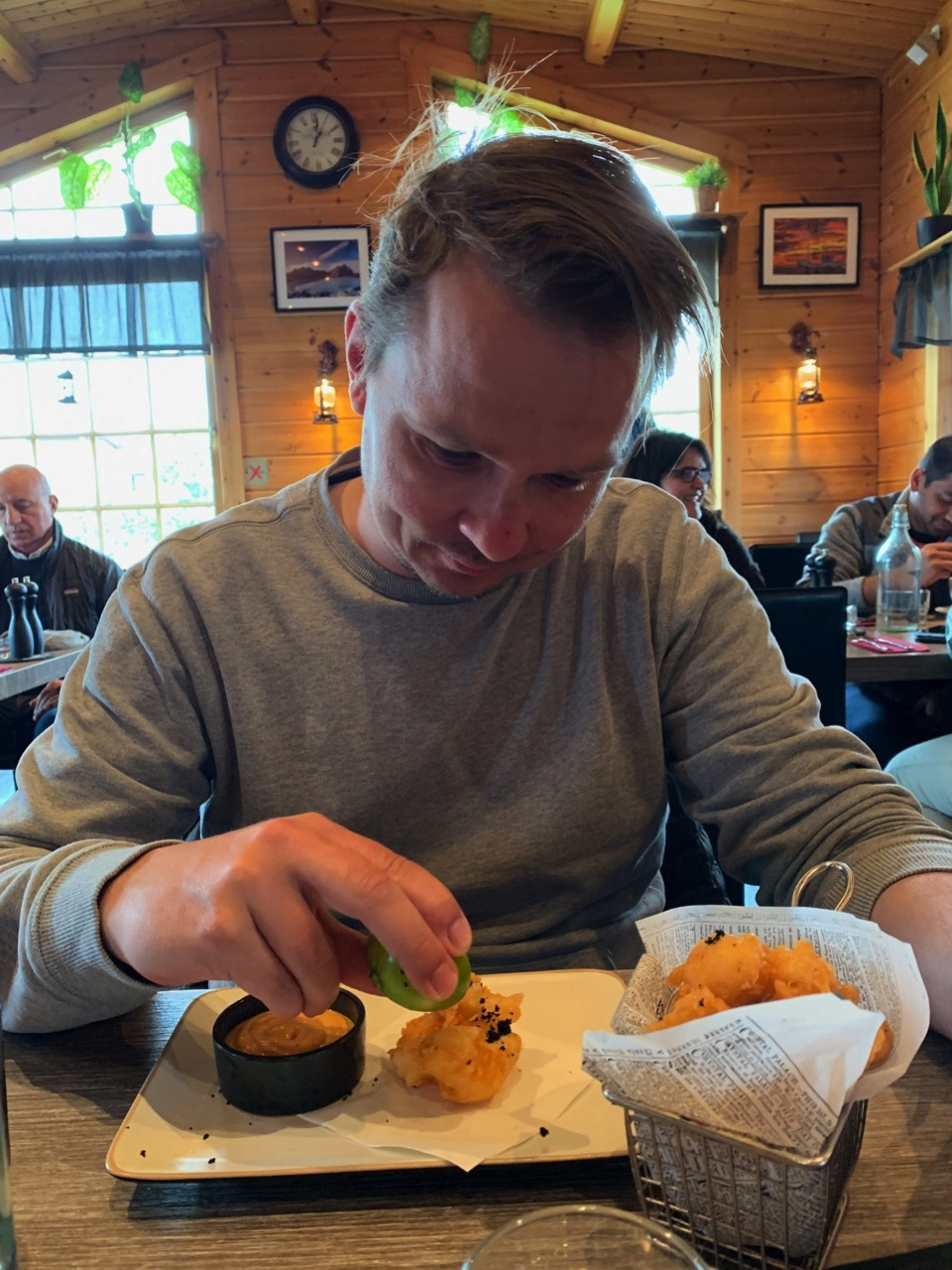 Der Wind weht so stark, dass wir beim Aussteigen die Tür festhalten müssen. Jetzt erst mal einen heißen Kakao.