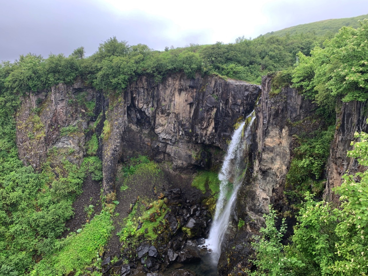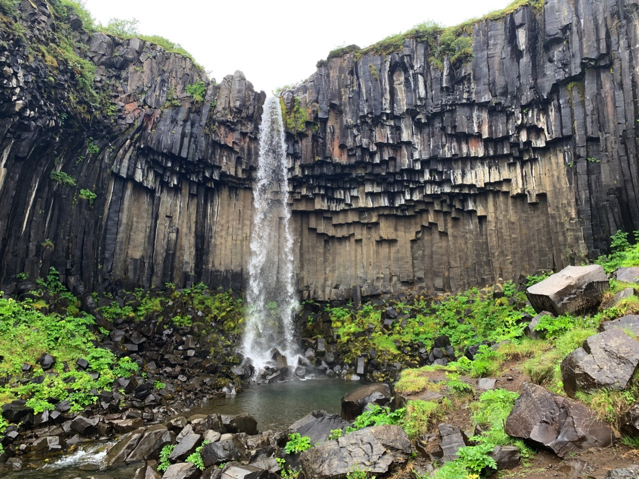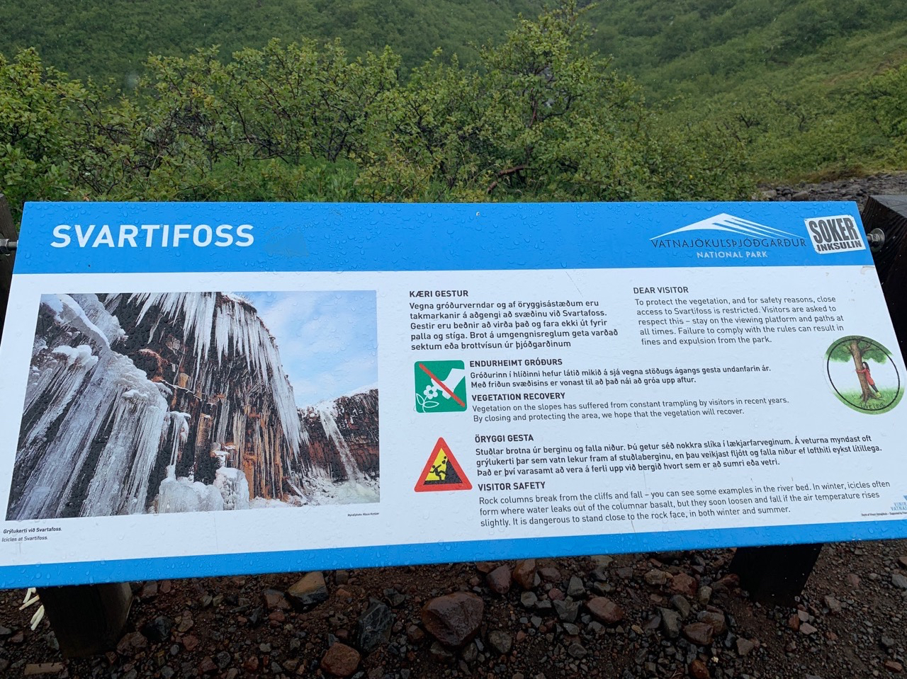 Wir suchen uns eine kleine Wanderroute aus, die zum Wasserfalls Svartifoss führt.