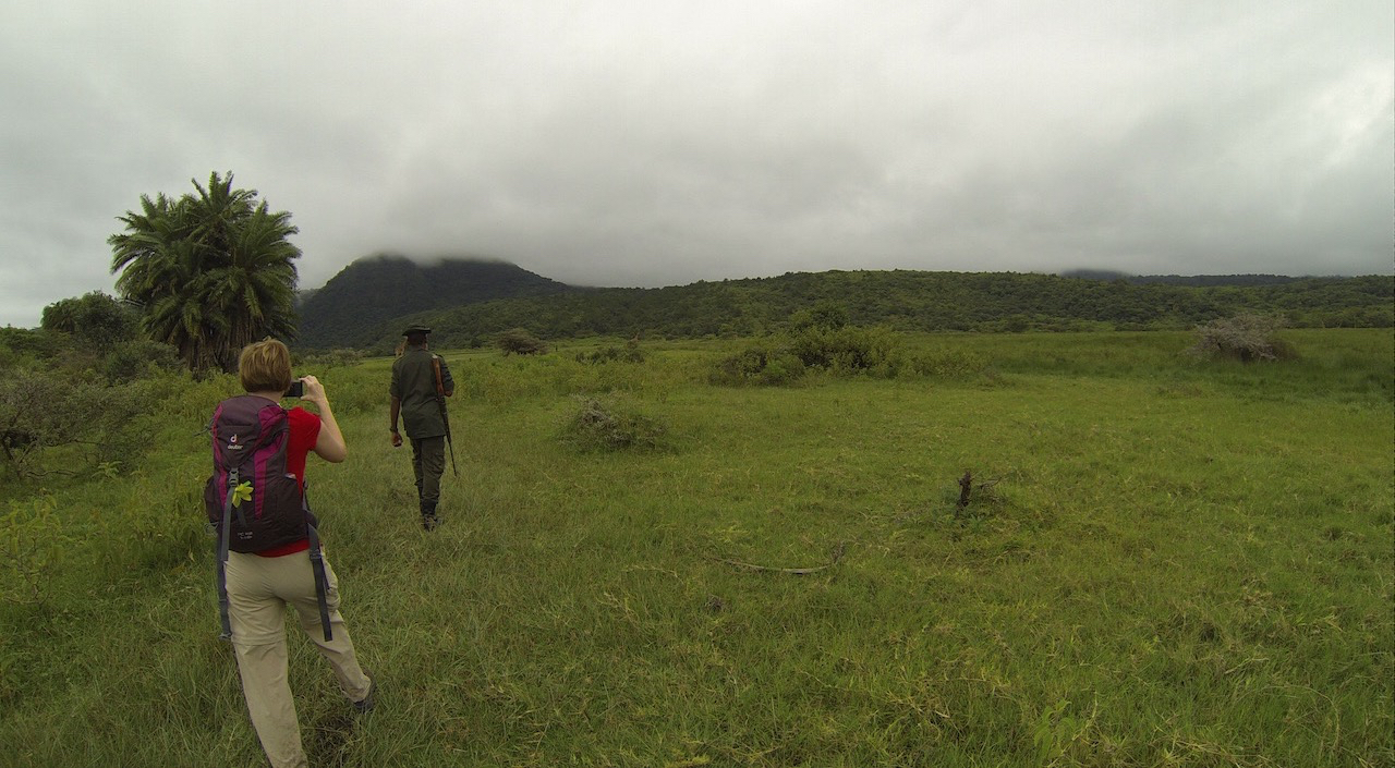 Wir gehen auf Pirsch mit einem bewaffneten Ranger, denn man weiß ja nie, was einen so erwartet wenn man auf augenhöhe mit den Tieren ist.