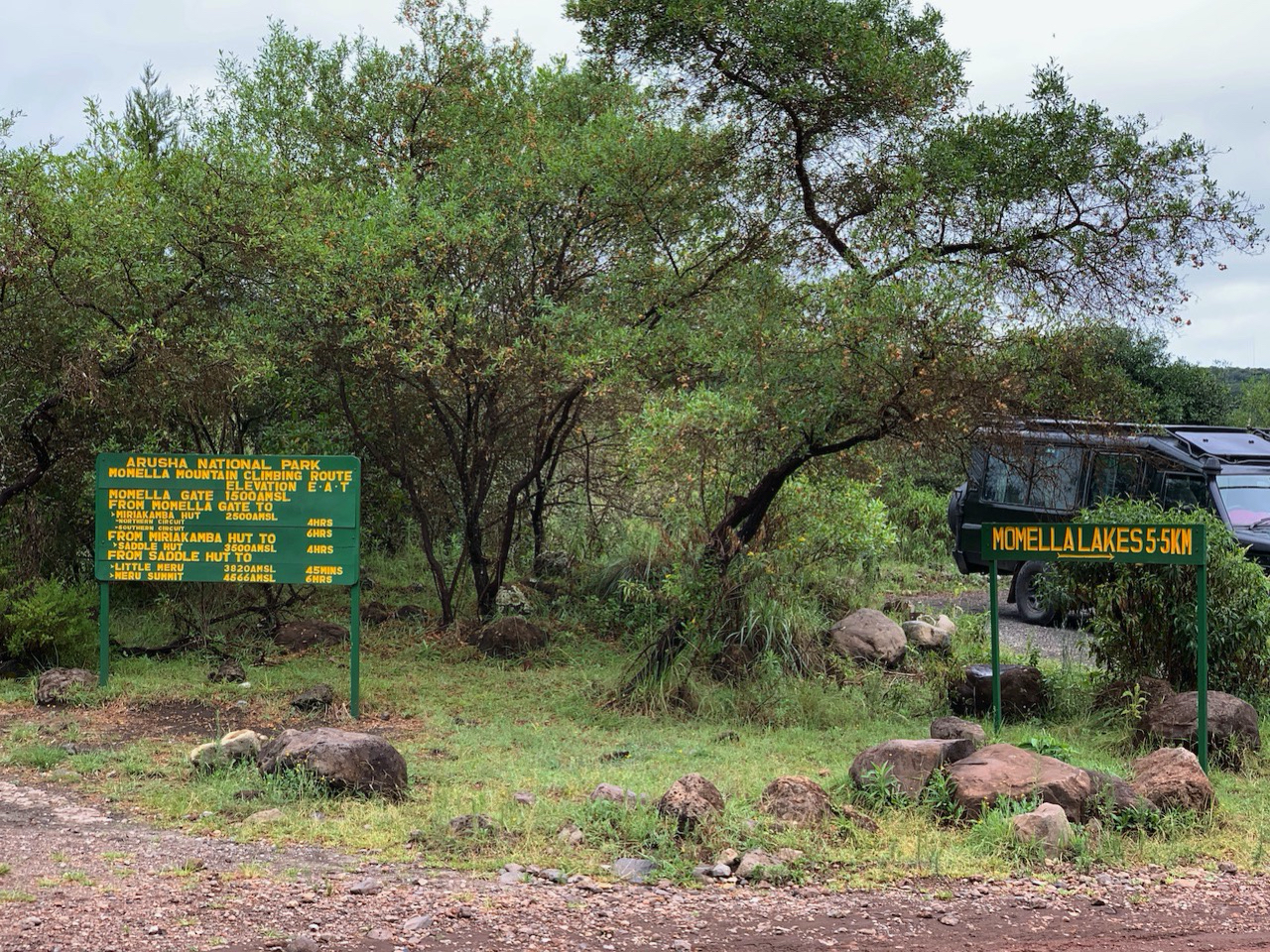 Heute steht die erste Safari auf dem Plan. Wir fahren in den Arusha-Nationalpark.