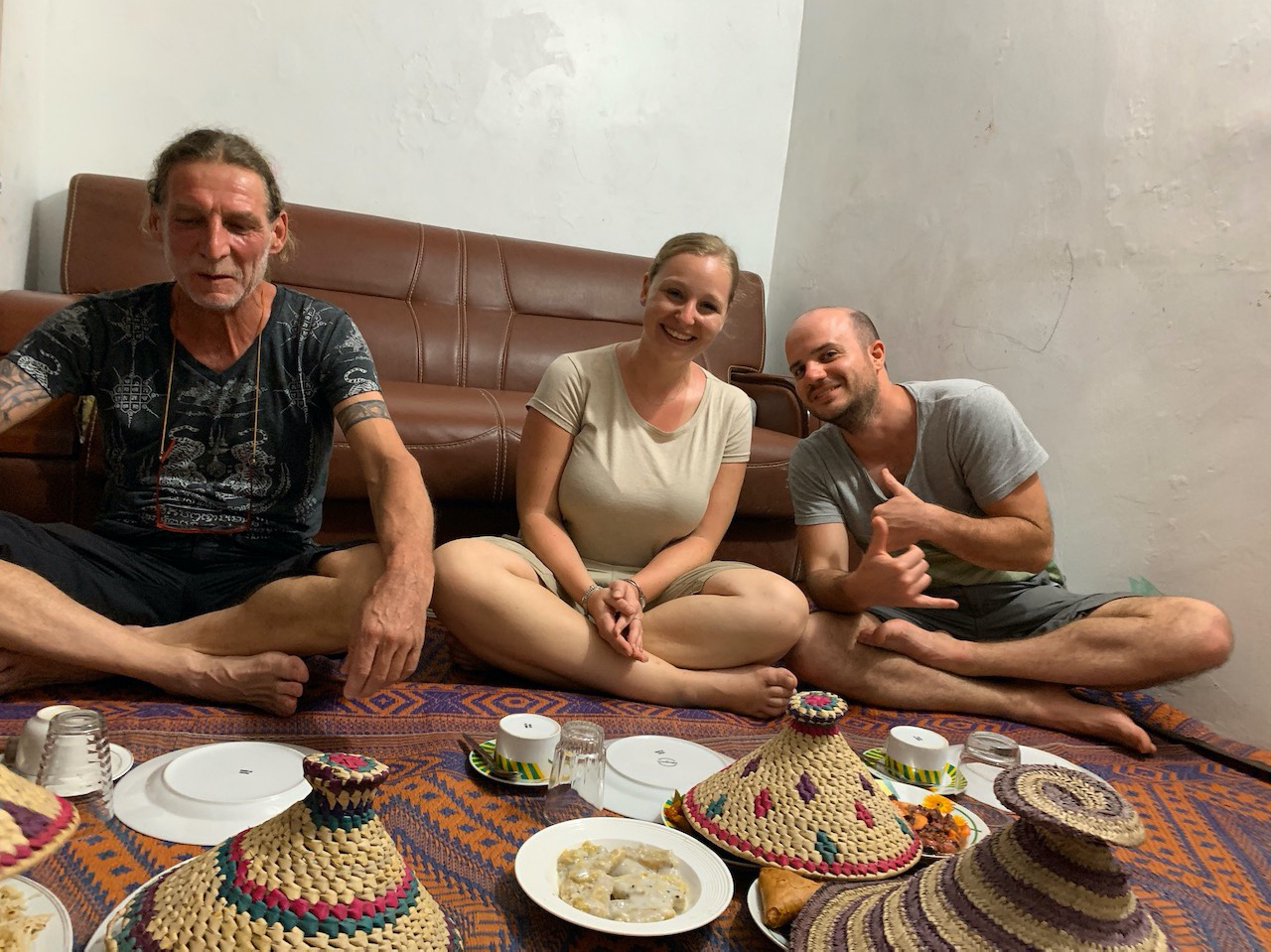 Am Abend kocht eine einheimische Familie für uns. Die haben sich wirklich sehr viel Mühe gegeben, denn was sie dort aufttischen, ist wirklich mehr als genug für alle.