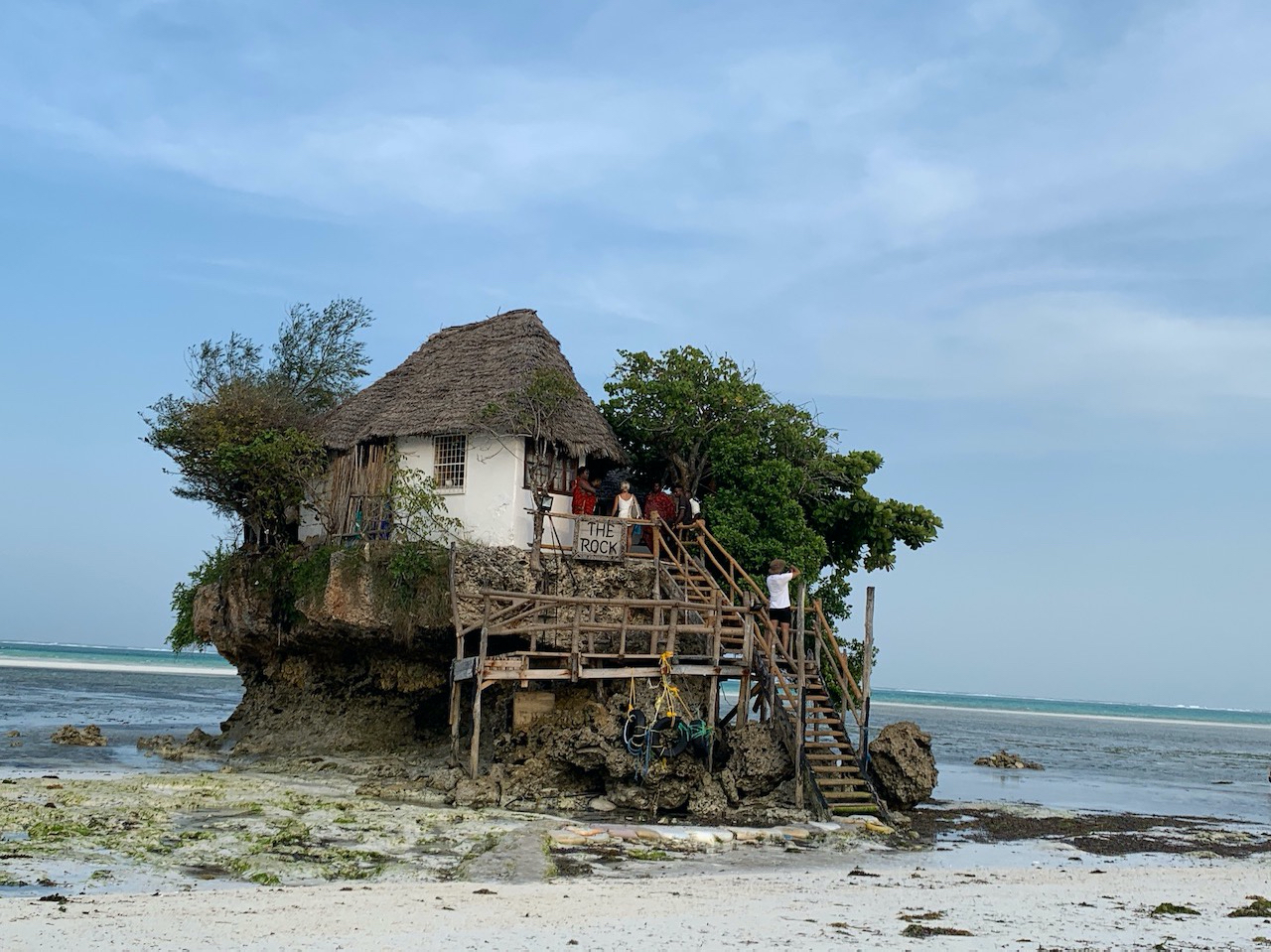 Die Location ist einfach unbeschreiblich. Ein Restaurant mitten auf einem Felsen im Meer. Da Ebbe ist, können wir zu Fuß rüber gehen, bei Flut wird man mit dem Boot rüber gebracht und man kann durch das flache Wasser waten.