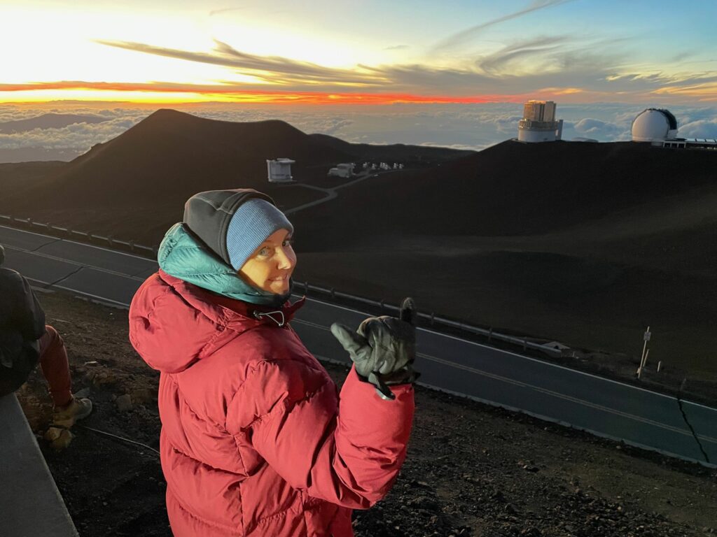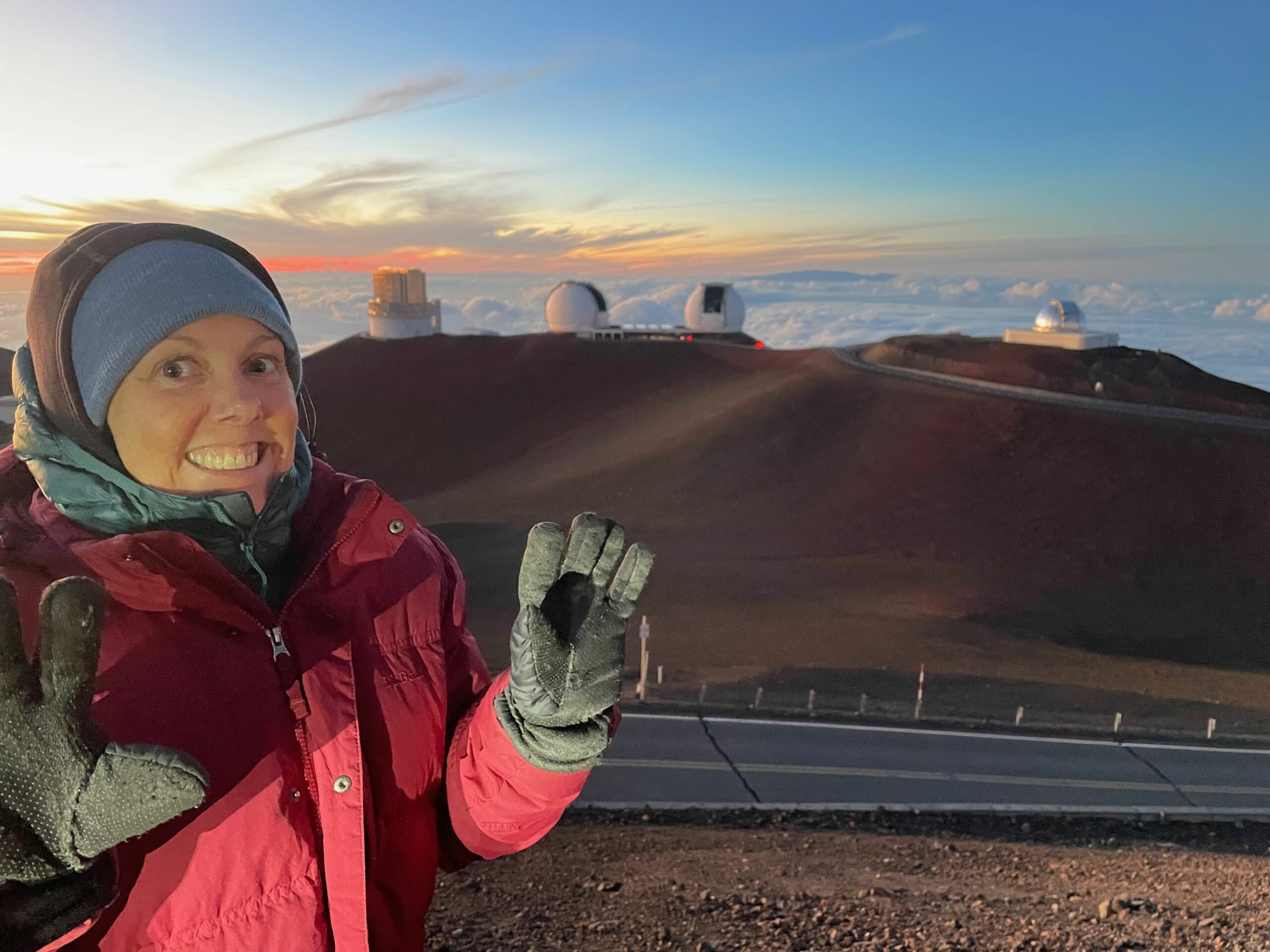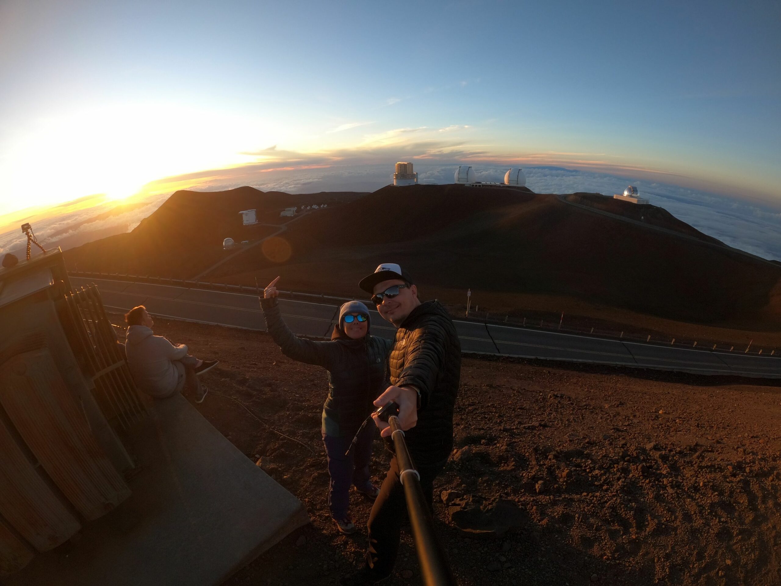 Und ja, wir sind immer noch auf Hawaii, auch wenn es nach einer Arktis Expedition aussieht, aber es ist wirklich verdammt kalt geworden. Man muss auch die Höhe bedenken. Zum Glück ist es windstill und wir bekommen dicke Parkas, Handschuhe und heiße Snacks und Getränke serviert.