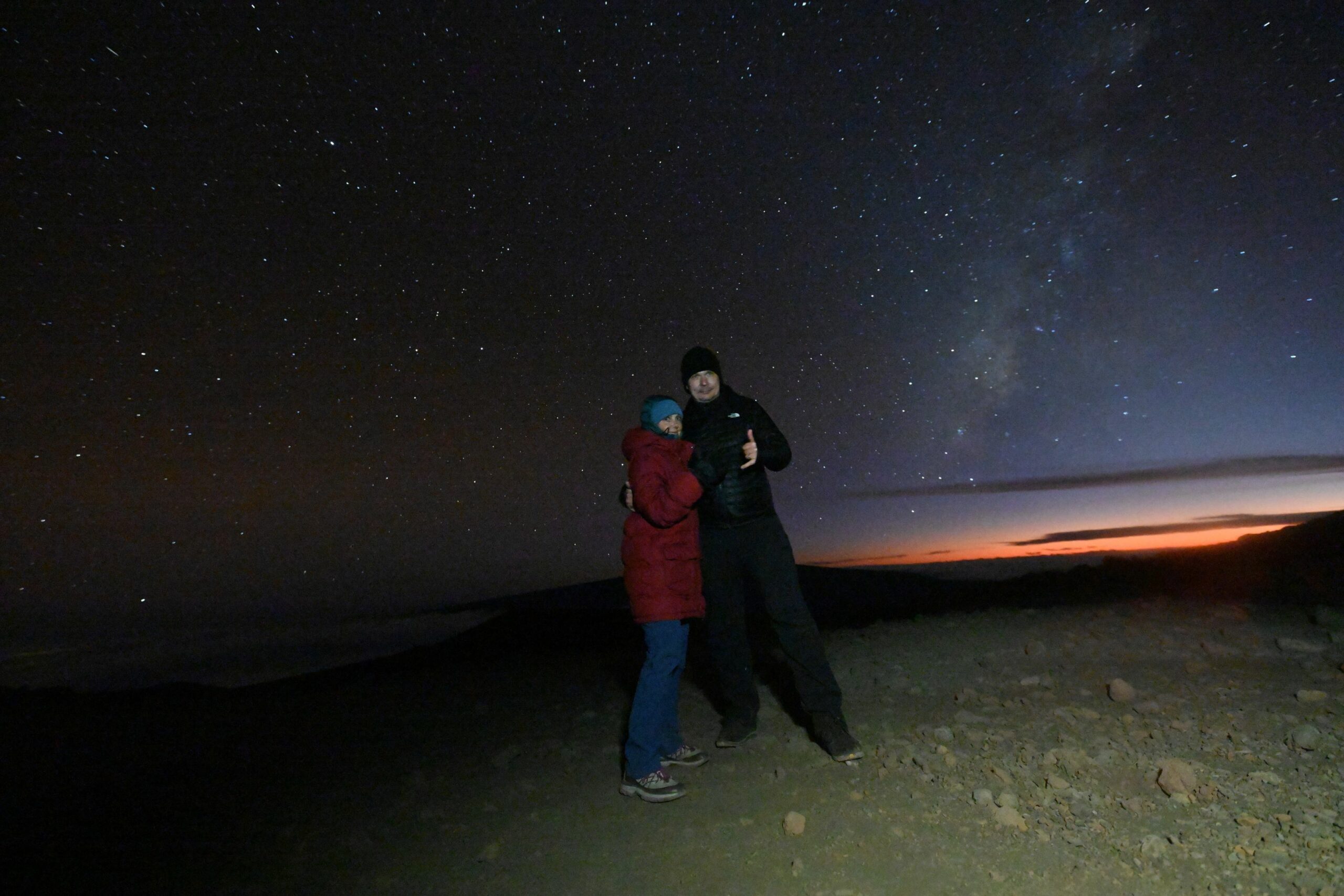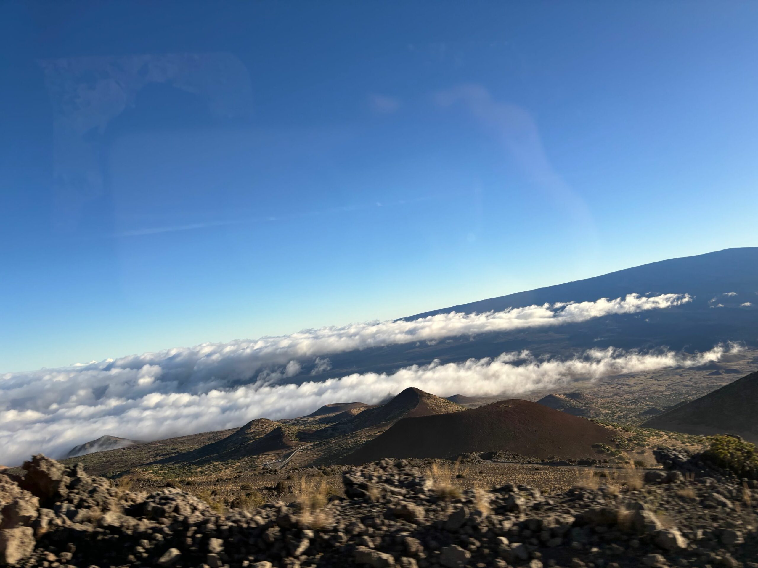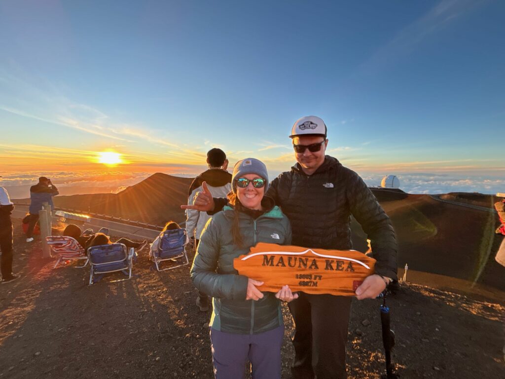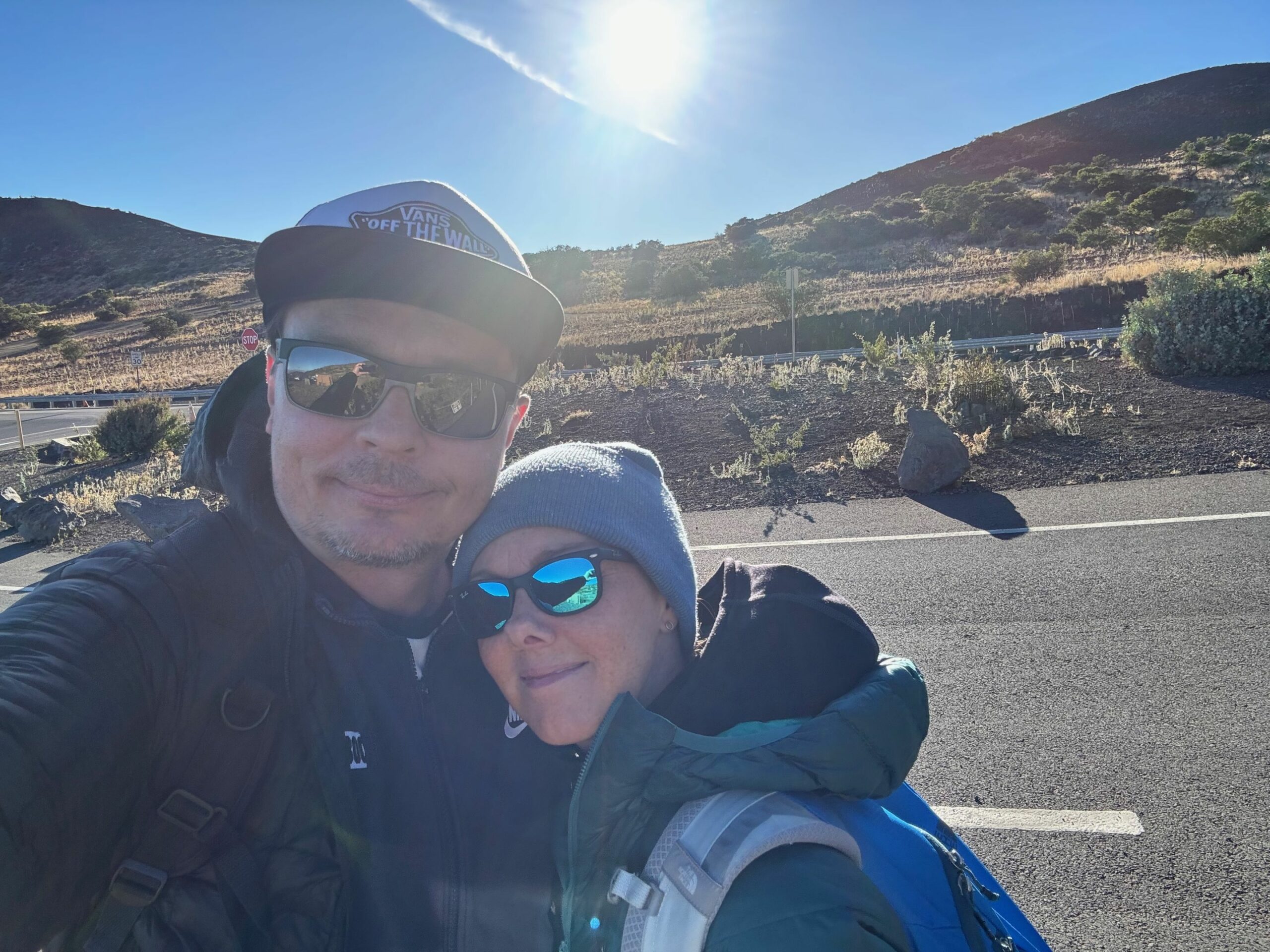 Und ja, wir sind immer noch auf Hawaii, auch wenn es nach einer Arktis Expedition aussieht, aber es ist wirklich verdammt kalt geworden. Man muss auch die Höhe bedenken. Zum Glück ist es windstill und wir bekommen dicke Parkas, Handschuhe und heiße Snacks und Getränke serviert.