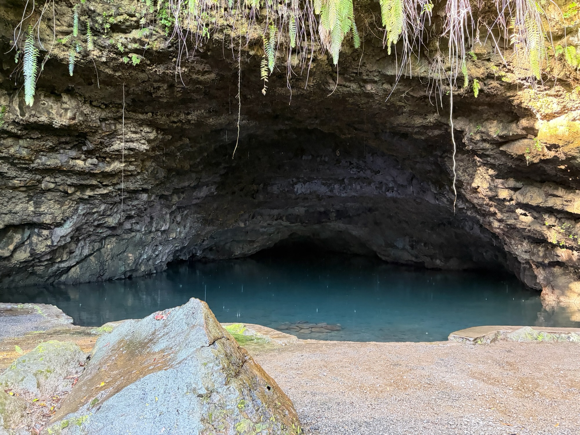 Anschließend machen wir uns auf den Heimweg, halten aber noch am botanischen Garten und Mara‘a Grotte — ein tiefer Süßwasser See in der Farnhöhle von Mara‘a.