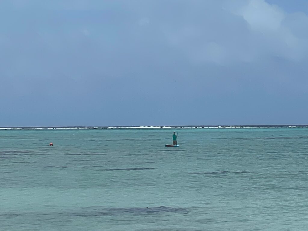 Ich versuche mich im Stand up Paddelimg. Soweit alles gut, aber der Wind und die dadurch entstehende Strömung ist schon sehr stark, so dass ich weiter abgetrieben werden als gedacht. Kurz denke ich, ich komme nie wieder zum Strand und treibe ab bis nach Fidschi.