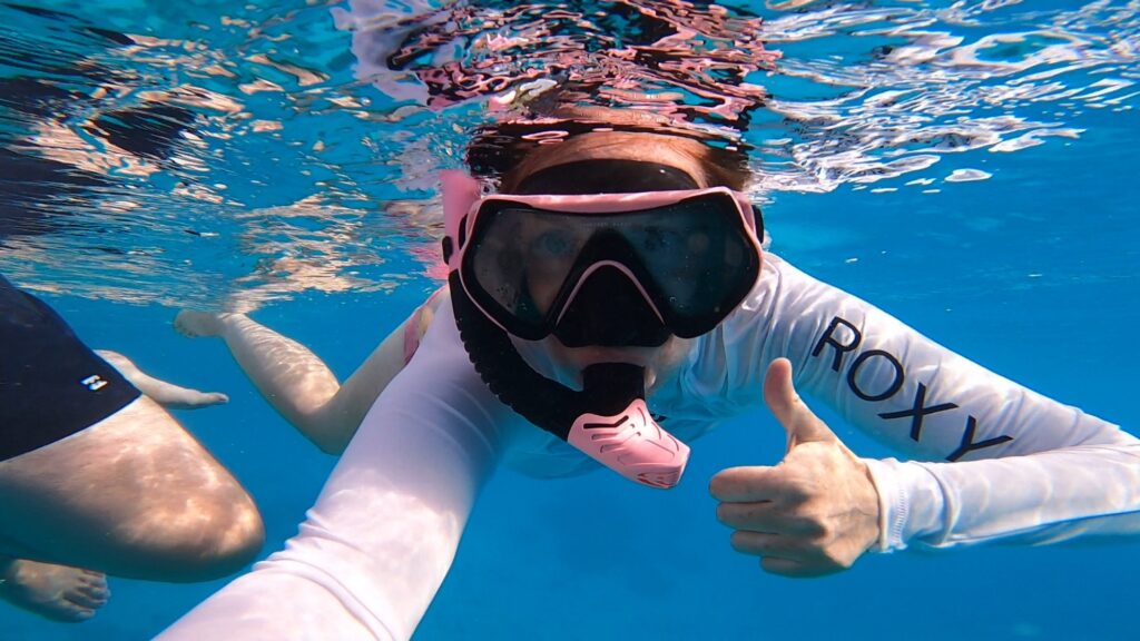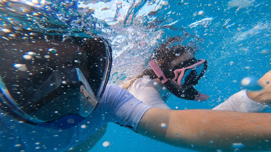 So muss man nich wirklich viel machen, man lässt sich einfach hinter dem Boot herziehen und genießt die Unterwasser Welt. Leider sehen wir hier nicht viel interessantes.