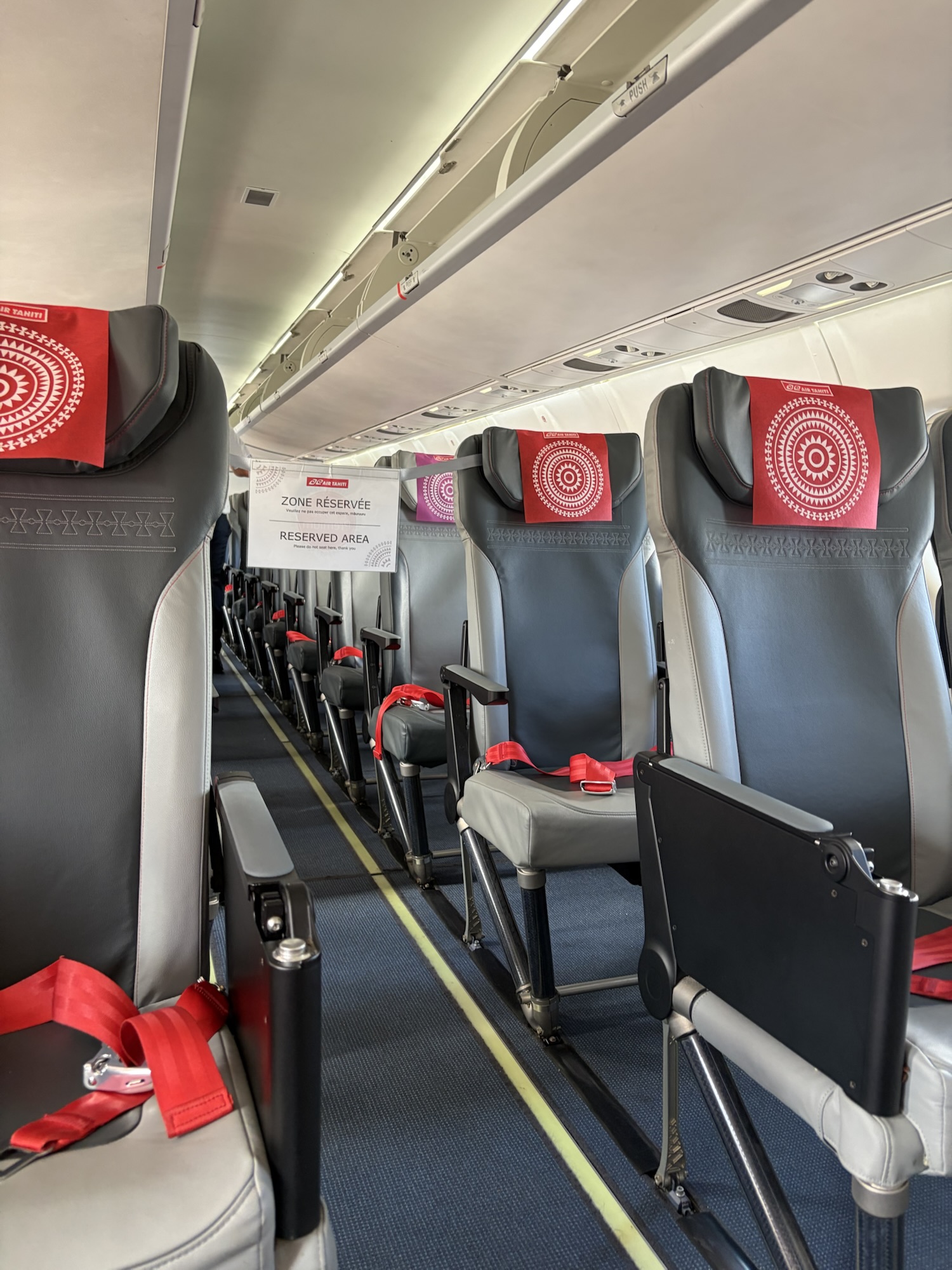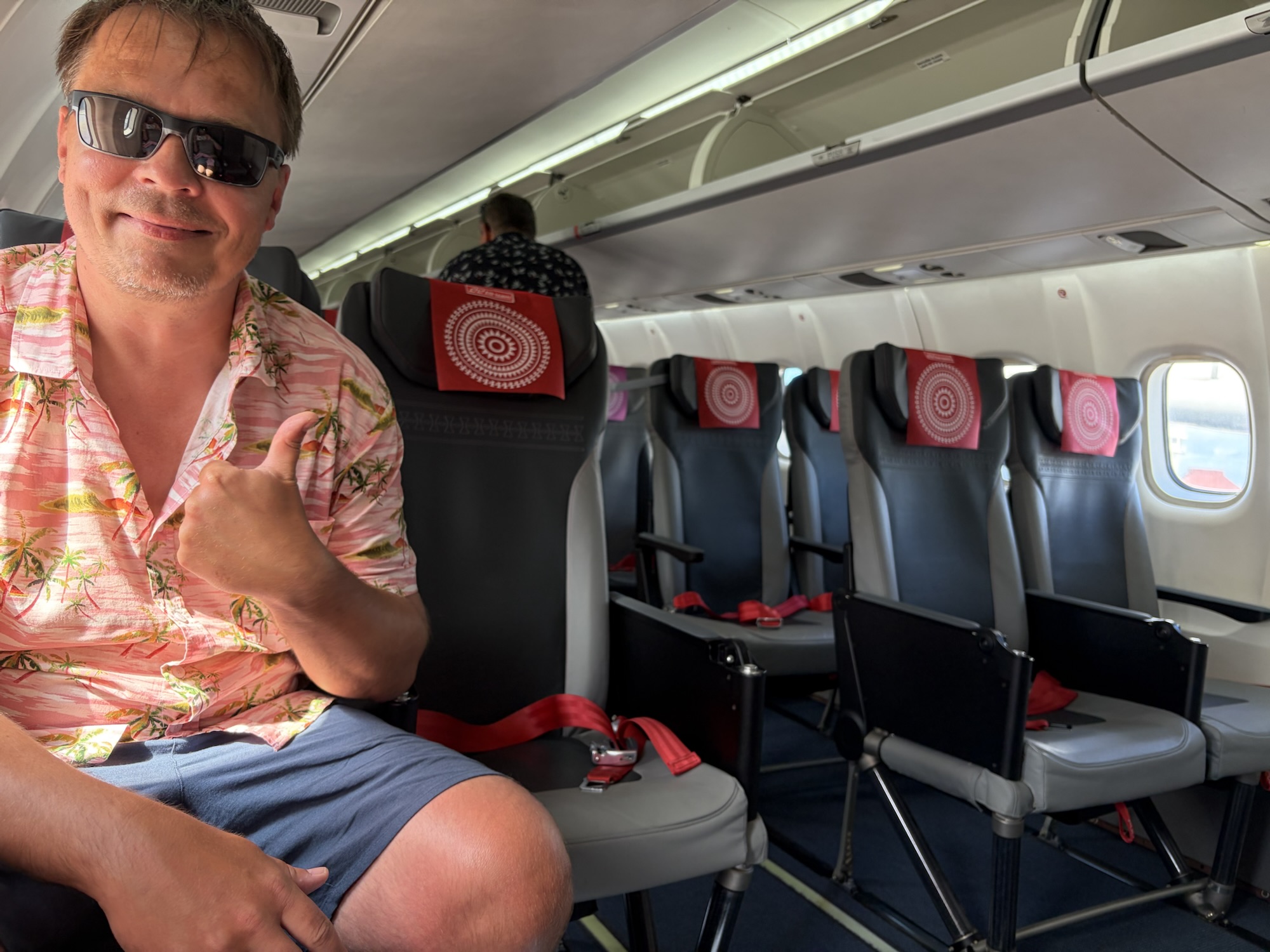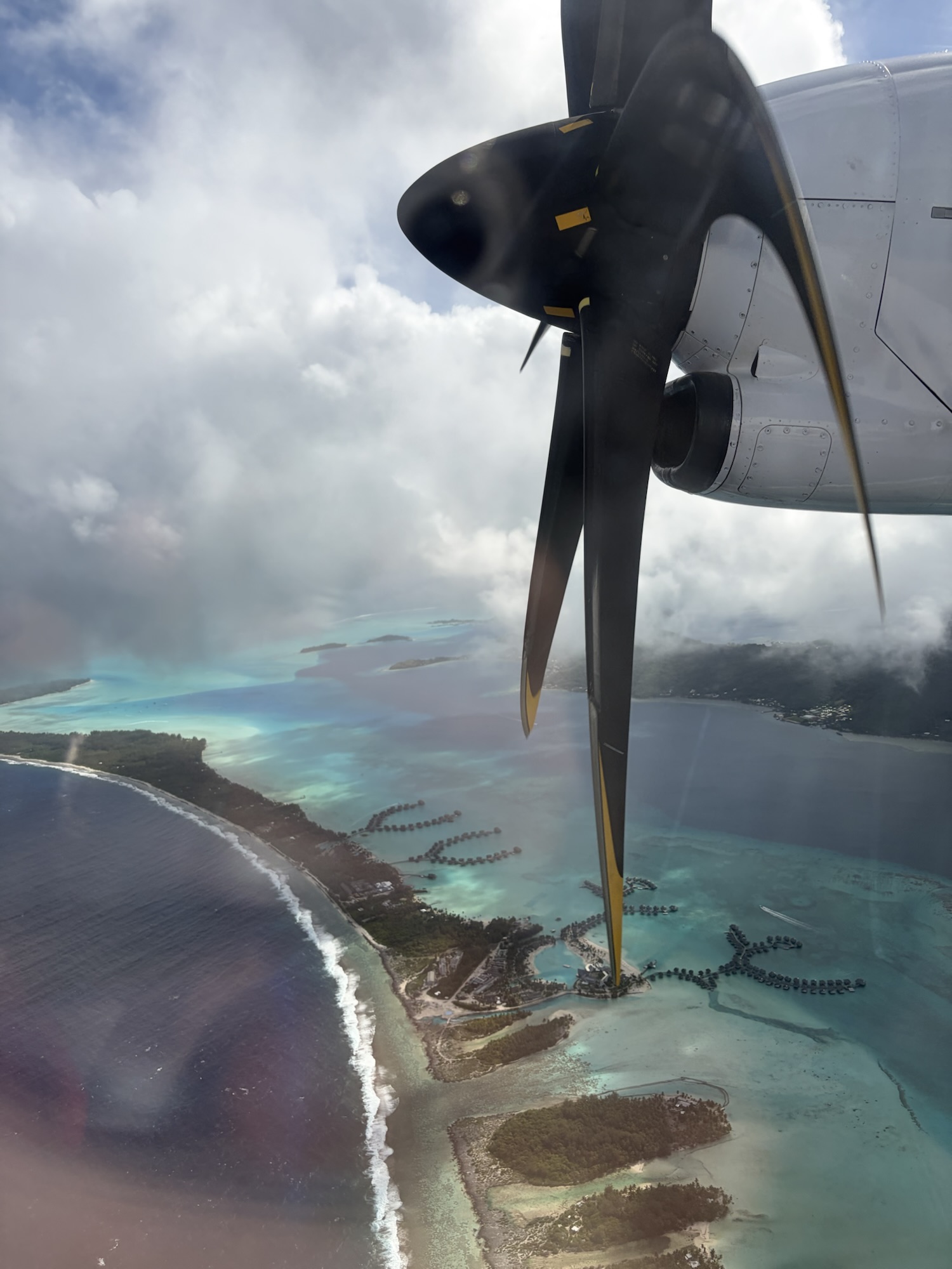 Am Flughafen angekommen, bekommen wir ein Upgrade. Ich dachte schon, wir müssen darauf zahlen, da Micha‘s Koffer ein wenig zu schwer ist. Aber nein. Wir kommen in die 1. Klasse, was bei Air Tahiti allerdings nur heißt, dass wir ganz vorne sitzen können, in einem abgetrennten Bereich.